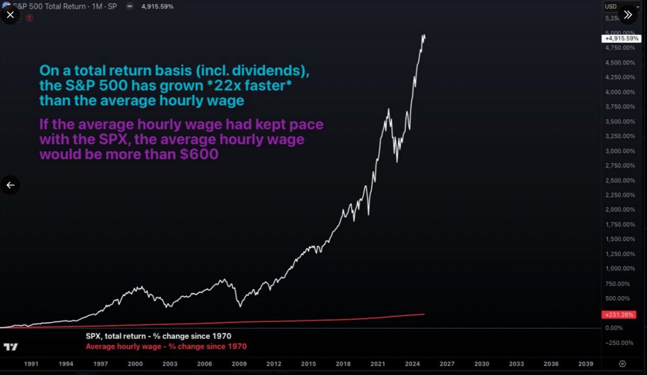 이로써 자본주의에서는 주식은 무조건 우상향한다는 신화가 생겼다. 즉 주식투자자(금융자산계급)의 수익률이 임금노동자가 자신의 노동을 팔아 버는 수익률보다 월등하게 높다.