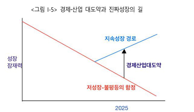 경제 성장 대도약과 진짜 성장의 길. 이재명 정권의 성장전략 보고서는 장기적 저성장 추이를 뒤집는 자본 투자 효율화 정책을 제시하고 있다. 출처 : 국정기획위원회 보고서