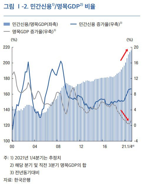 이는 불과 8년(정확히는 7년)만에 financial dominance 정책이 한계에 봉착하여 역효과를 내고 있다는 것을 보여준다. 즉 아무리 부채가 증가해도 명목GDP가 그만큼 증가하지 못한다는 것이다. 이는 이 시스템이 극단적으로 비생산적인 부문(예컨대 부동산)에 편향되었다는 것을 말해준다(이는 한국만의 현상이 아니라 전세계적으로 벌어진 현상이다).