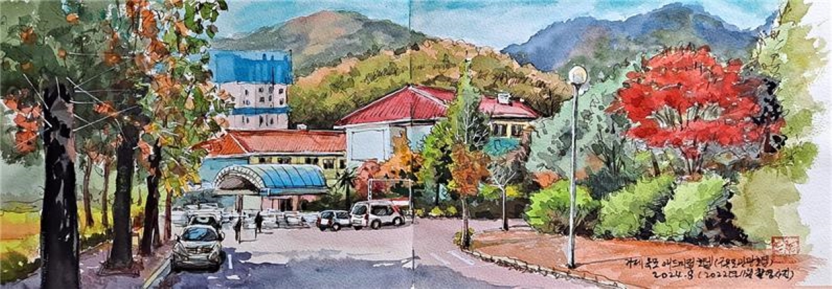 2022년 11월 18일 답사를 갔을 때 관광호텔을 철거하려고 내부 집기를 걷어내고 있던 중이었다. 그때 찍은 사진이나 그것을 바탕으로 그림을 그렸다. 의도를 가지고 찍고 그렸으니 이것도 이제는 자료가 되었다.