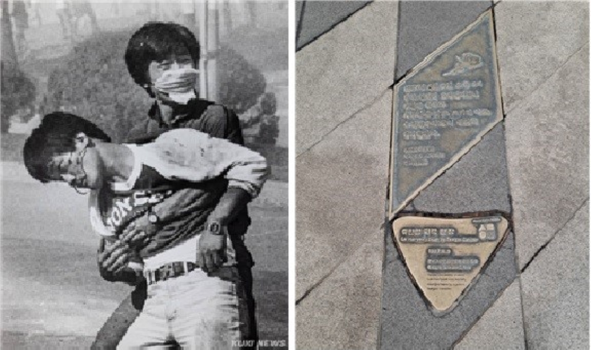 연세대학교 교문 앞 이한열 피격 현장 동판, ⓒ박준성