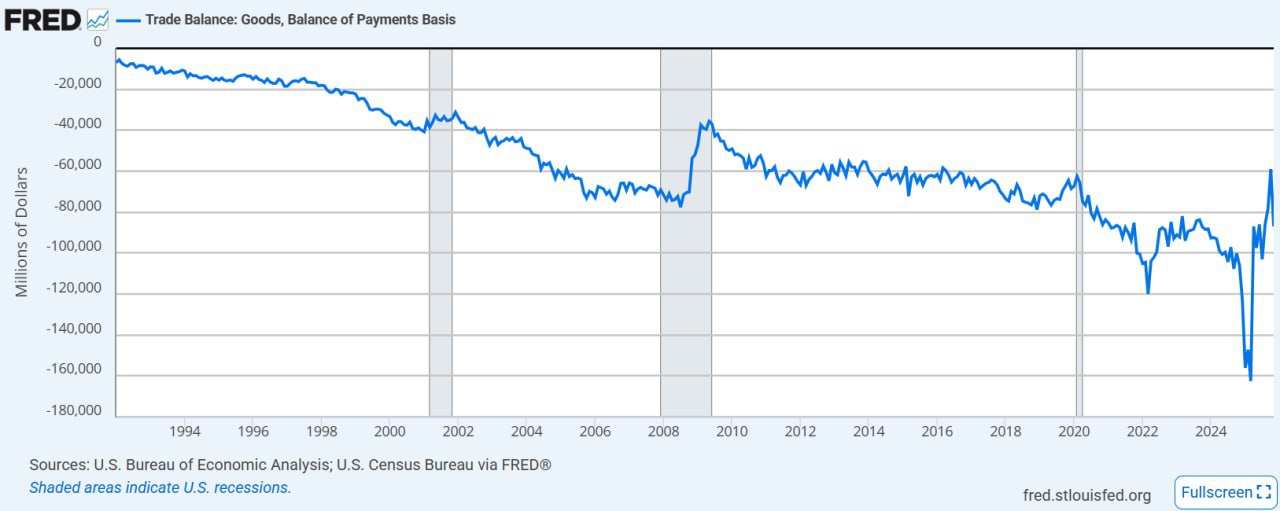 트럼프 집권 뒤 미국의 무역적자가 감소한 것은 ‘관세’ 때문이 아니라, 실은 금의 매각과 관세 부과 이전에 미리 비축해 두었던 의약품의 수입 감소 때문이었다. 실은 미국의 상품 수지에 있어서 트럼프 고관세 효과는 거의 없었다. 즉 관세는 무역수지 감소에는 효과가 없다. 실은 아예 처음부터 무역수지 개선이 일차적인 목표가 아니었다고 평가해야 할 것이다.