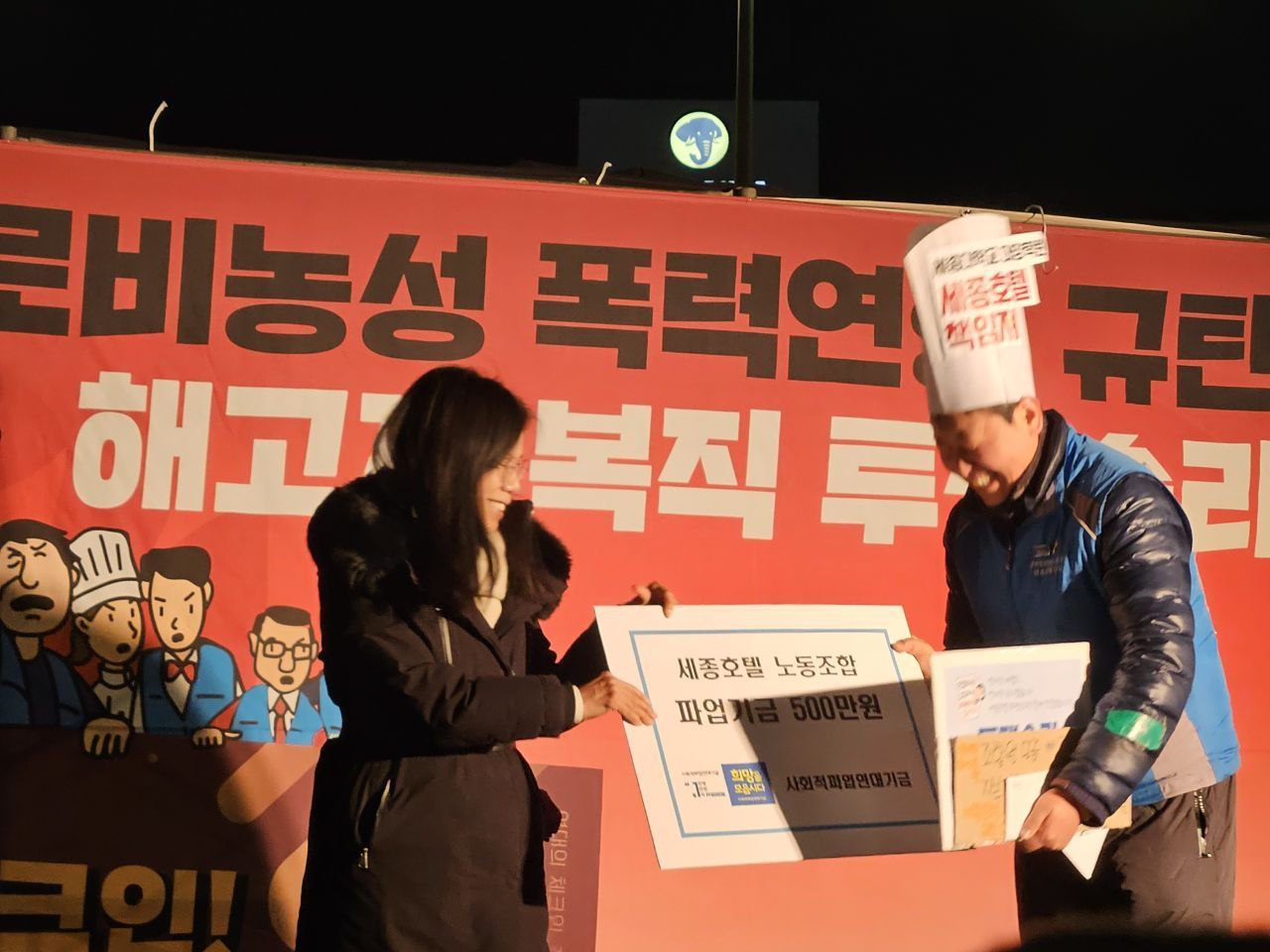 91번째 사회적파업연대기금을 세종호텔노동조합에 지원합니다