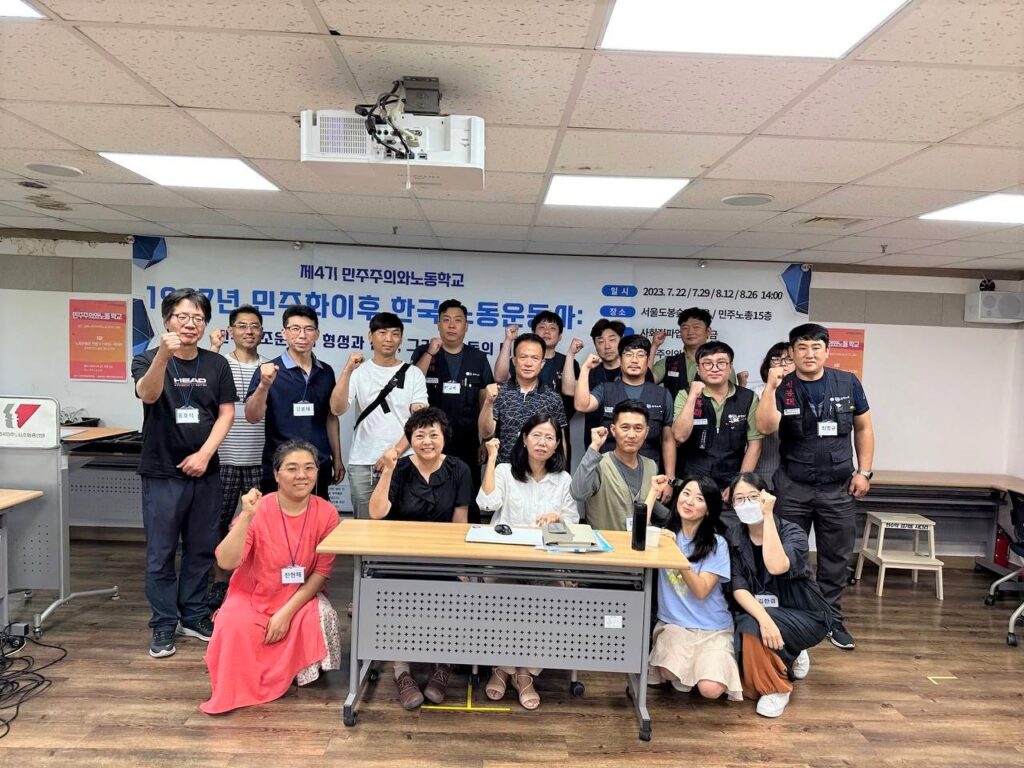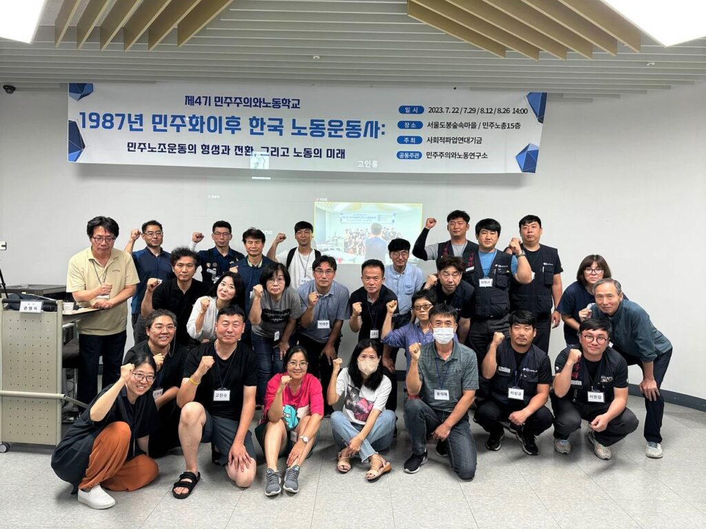 4기 민주주의와노동학교 4강 87년이후 노동운동사 – 2008년이후 민주노조운동 : 조합주의 속에서 노동의 미래 2023년 8월 29일 / 교육선전 사회적파업연대기금이 주최한
